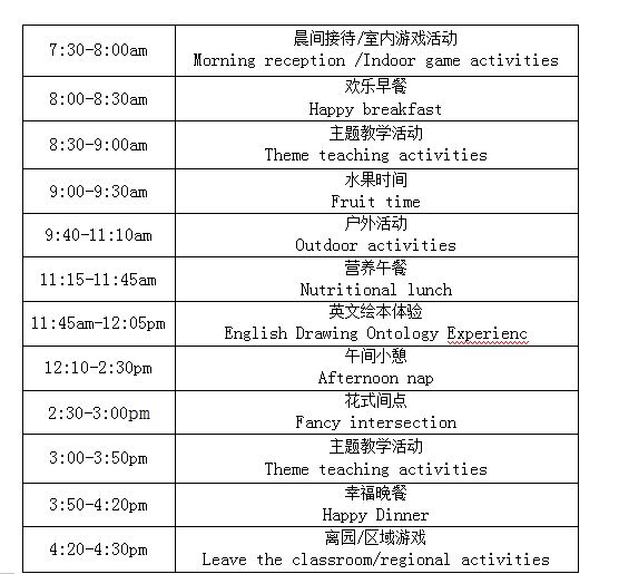 托馬斯附屬幼兒園幼兒一日活動安排