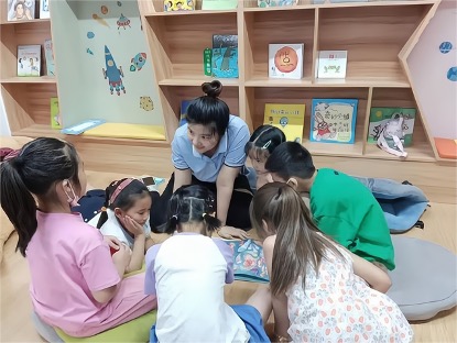 (孩子們?cè)跁?shū)吧指導(dǎo)師的引導(dǎo)下進(jìn)行閱讀和討論)
